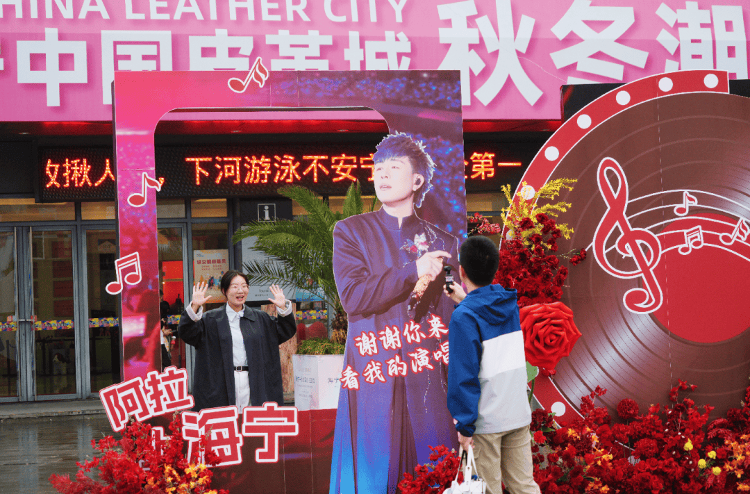 海宁的“友好”不止于舞台。从一张票根开始,整座城市为乐迷铺就了一条“贴心服务链”。在海宁中国皮革城,官方设置了“烟火刹那”主题应援区。乐迷凭演唱会电子票免费领取限量版皮革城内购卡,享受近70家示范店铺专属优惠,带动了皮革城消费,还能兑换胡彦斌巡回纪念撕拉片,把偶像的“同款记忆”带回家。