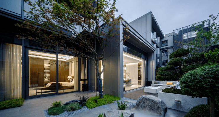 项目平均南向面宽约23m,最大面宽达到了较为惊人的26m,很大程度保证了室内采光和视野。南向玻璃最大约65%窗墙比,让室内场景的透光面积更大。此外,3重入户设计,让居住体验更加私密和便捷。