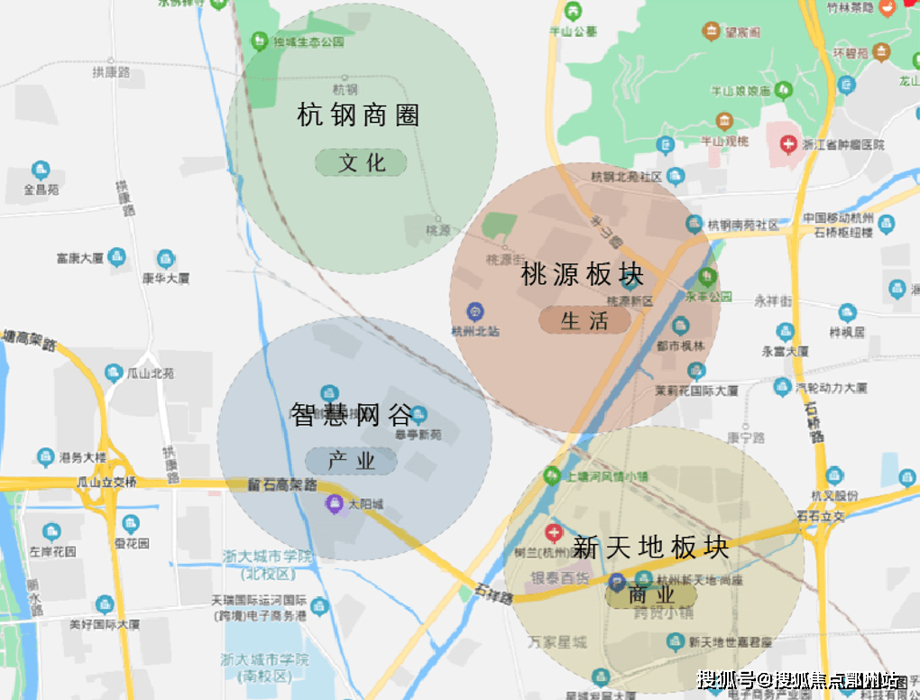 桃源板块借势半山风景资源和杭钢工业遗存、智慧网谷产业发展,将丰富的文化资源、生态资源转化为自身配套。同时在政府规划中,