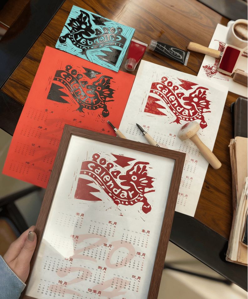 以版画为媒介,让天马行空的创意在木板上绽放,成品可置于书桌点缀日常,可作为新年伴手礼赠予亲友,让木刻的蹄印载着满满福气,陪你踏过一整年的三餐四季。