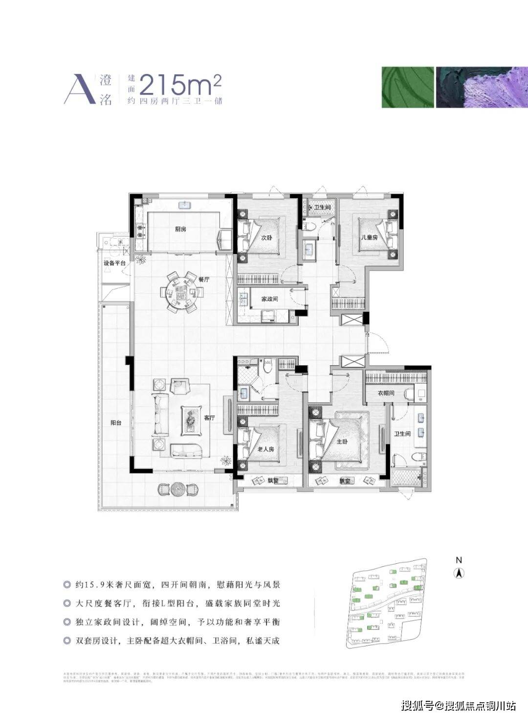 得益于天然的低容积,洺川名著在产品类型上做起文章,整个项目打造纯粹的6-12层的多层以及小高层住宅,精装修交付,设计了155㎡和215㎡两大主力户型。