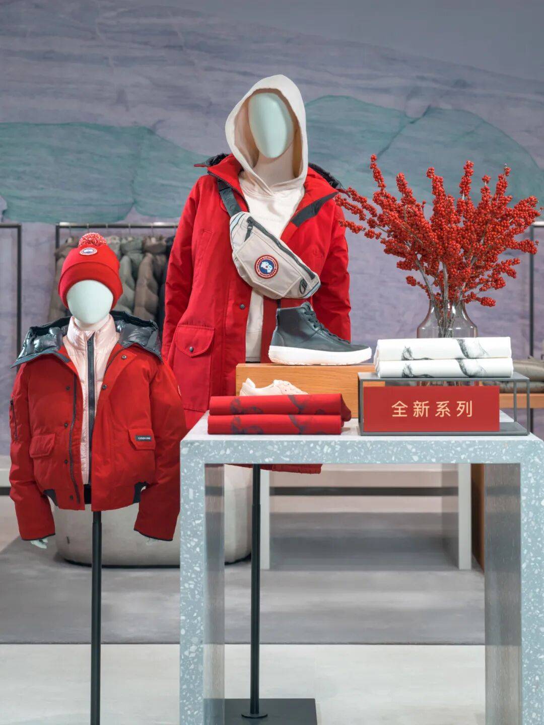 新店呈现Canada Goose 加拿大鹅全系列外套、服装和配饰,重点陈列2026 新春限定系列与2026 春夏系列新品。2026 新春限定系列包括Matt McCormick 合作系列与全新季节配色“胭脂红”,象征蓬勃生机与从容气度,凝聚新生能量与吉祥寓意。