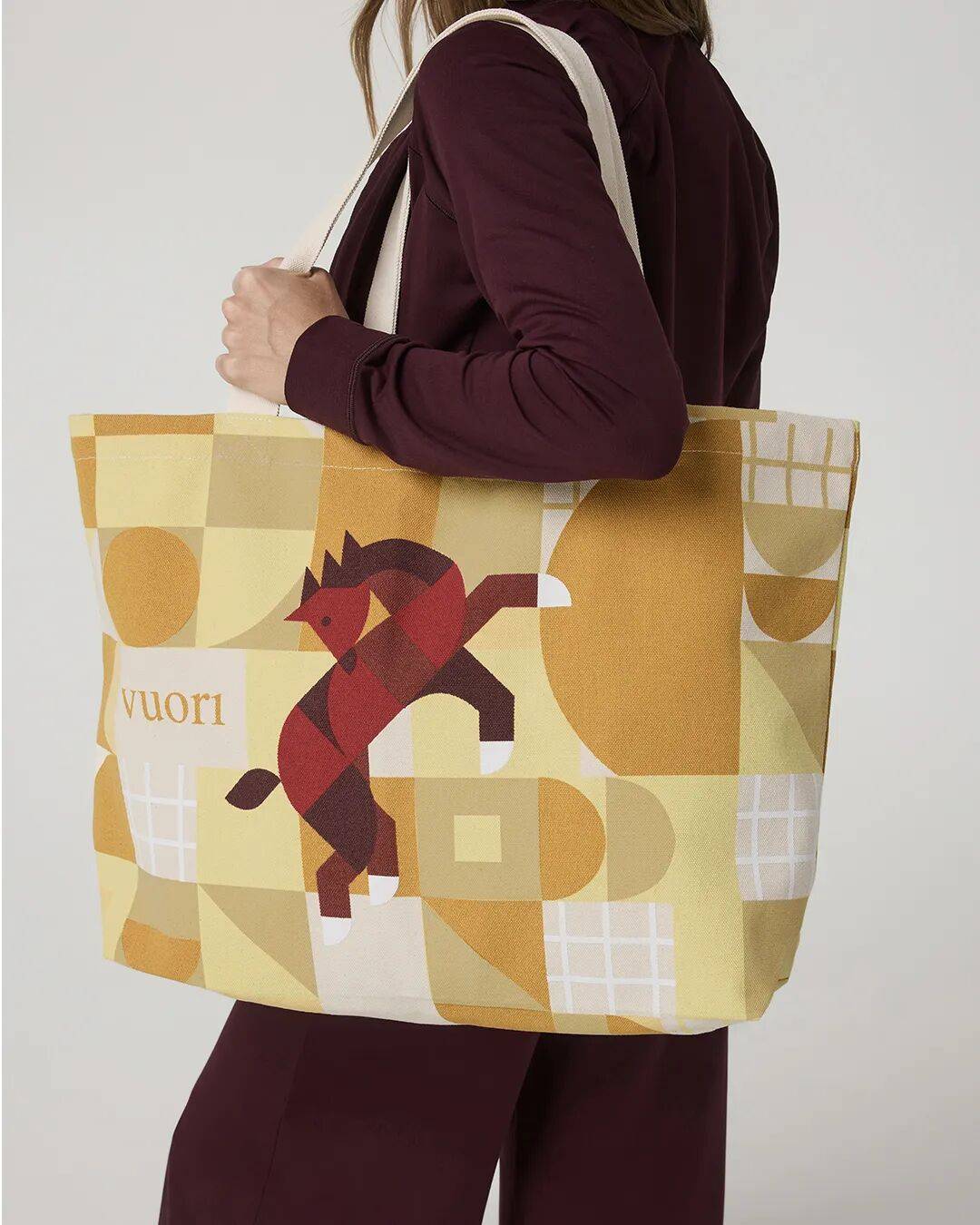 “马象征着自信、生命力与自由,” Alyssa Low 如是诠释。她以标志性的几何语言与明快用色勾勒画面,通过清晰结构与适度留白,呈现出力量与安定并存的视觉意象,亦与Vuori所倡导的从容姿态悄然呼应。
