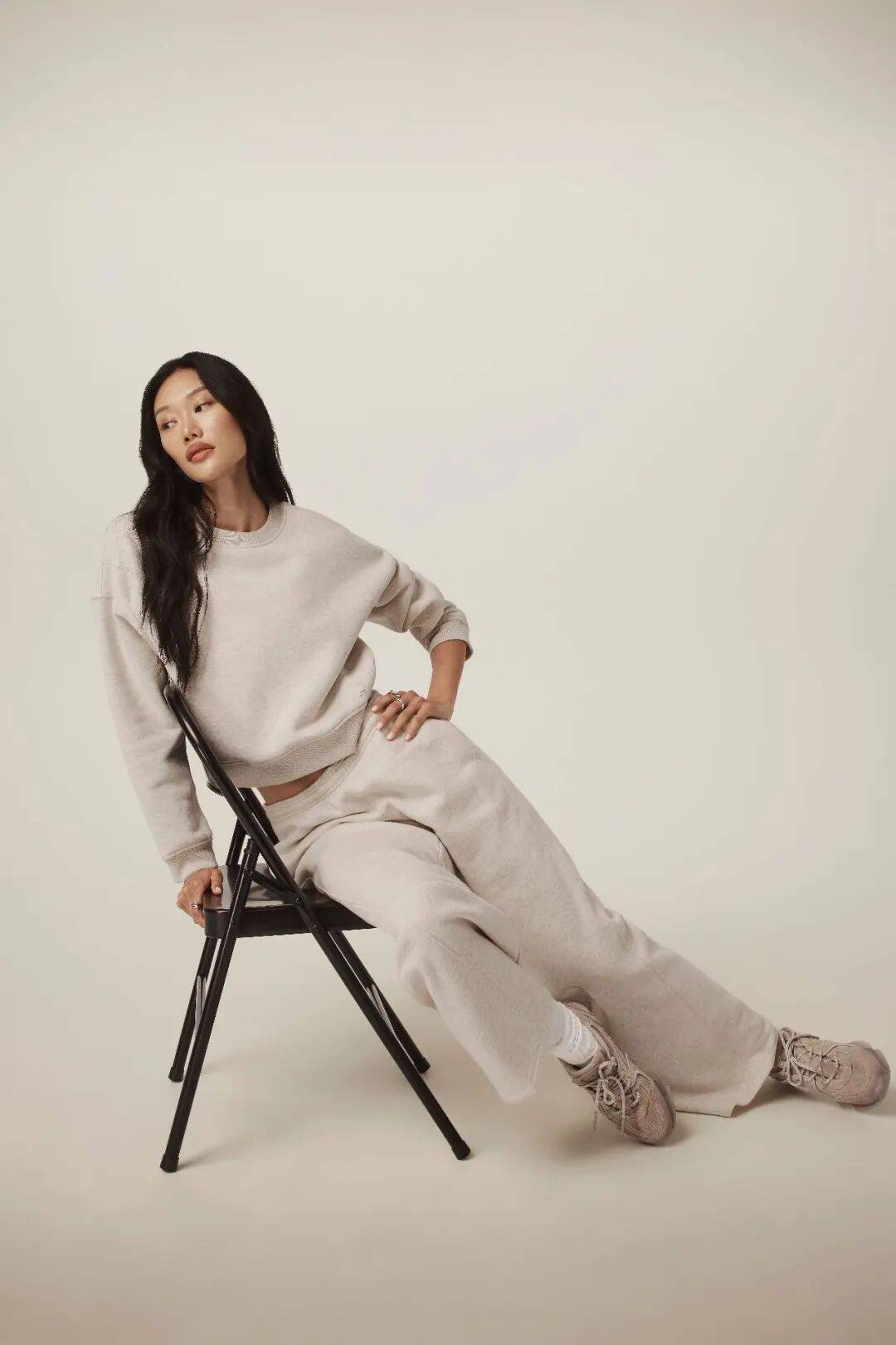 女士系列涵盖Restore休闲套头衫卫衣与松紧阔腿运动长裤采用“云舞白”配色,灵感来自晨雾轻散的朦胧瞬间,呈现柔和而含蓄的视觉层次,平添冬日暖意。