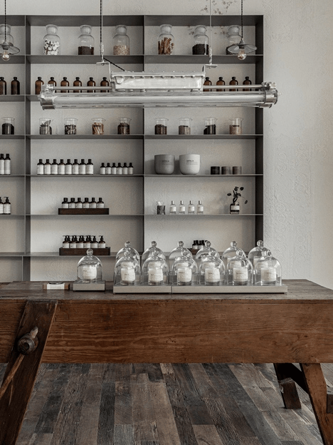 漫步其间,经典香氛、香氛身体、家居香氛、全身护理与复古理容系列作品悉数陈列于中古家具之上。
