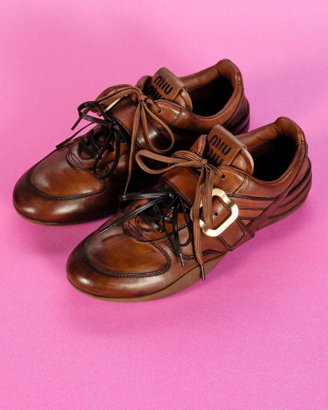 鞋履系列中,小牛皮便士乐福鞋全新推出奶油黄色款式;而直接复刻自2006年春夏秀场的木底鞋与靴子则以硬朗设计演绎当代态度,尽显Miu Miu所代表的力量感与实用美学。